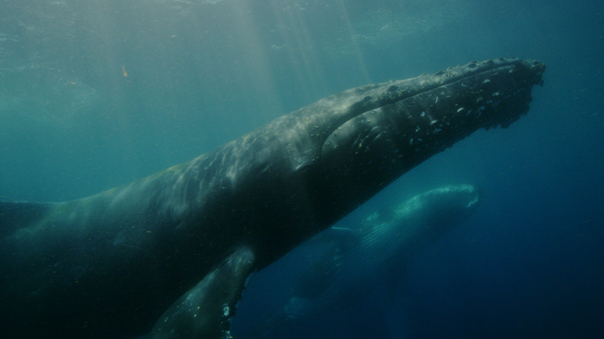 Duo of Humpback Whales Drifting Past Camera